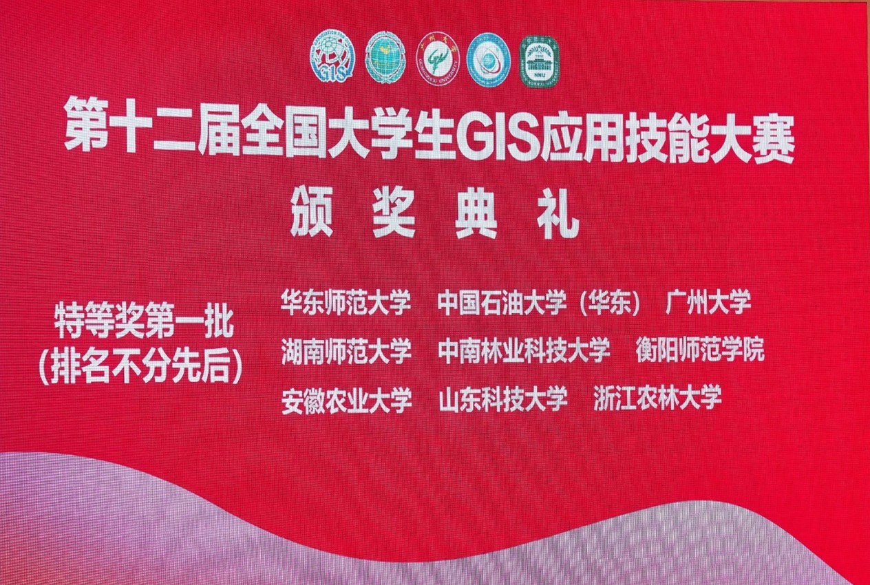 2023年12月1-3日,由教育部地理科学类教学指导委员会、中国地理信息产业协会、中国地理学会主办,中国地理信息产业协会教育与科普工作委员会、广州大学地理科学与遥感学院等共同承办的“第十二届全国大学生GIS应用技能大赛”在广州大学落下帷幕。我校由理学院2021级地理信息科学专业唐千惠、龙求继、董子涵、林雨欣(排名不分先后)四位同学组成的中南林业科技大学代表队,在12月2日的比赛中,分工明确、配合默契、冷静分析,最终荣获大赛特等奖,指导教师赵春燕老师、谢绍锋老师同时获得特等奖优秀指导教师荣誉称号,这是我校连续六年参赛以来获得的第四个特等奖,代表着中南林业科技大学在地理信息科学领域的优秀教育成果。