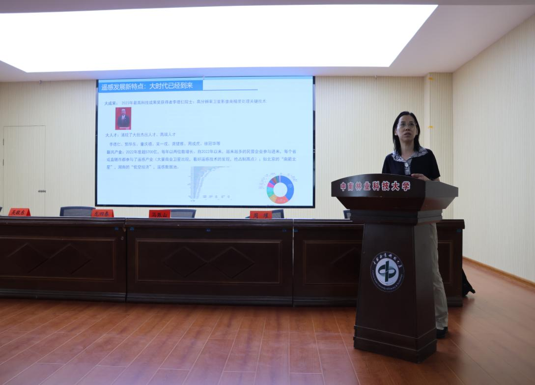 会上,林辉教授以深入浅出的方式,全面解读了遥感学科的内涵、前沿动态及发展前景,并详细阐述了我院研究生招生政策。她鼓励毕业生积极报考本院遥感专业,以实现学术追求和职业发展。互动环节中,林辉老师与学生们进行了热烈的问答交流,现场气氛活跃。