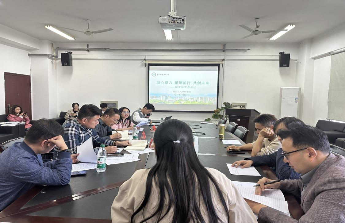 为了全面提升班主任工作质量,10月23日下午,前沿交叉学科学院召开了学院全体班主任工作会议,院领导马振山、周璀、吴小红、吴敬东参加了会议。会议由副院长周璀主持。