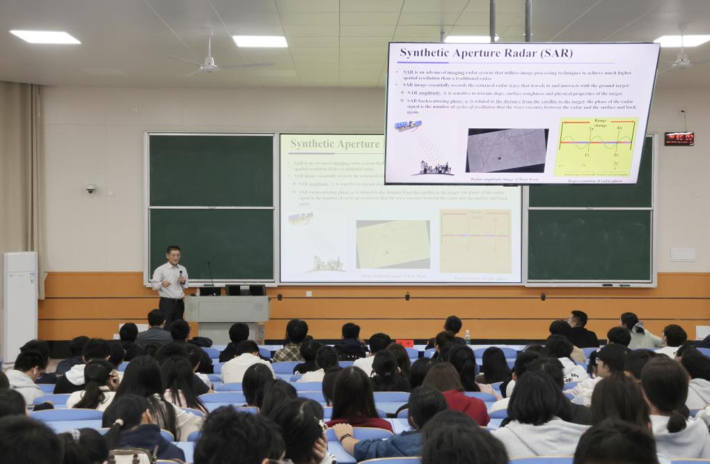 何彬彬教授以《森林可燃物信息遥感反演及火灾监测预警示范应用》为题,从三大难题严重影响森林草原防火的准确性、森林关键可燃物信息遥感反演以及植物定量遥感基本概念、森林火灾检测预警的基本思路以及该项目在实际生活中的应用等四个方面进行详细阐述。报告中,他列举了多个火灾事例,并深入剖析其在四川、云南等地的成功应用,让同学们切实体会到科技在生态保护中的力量与价值。