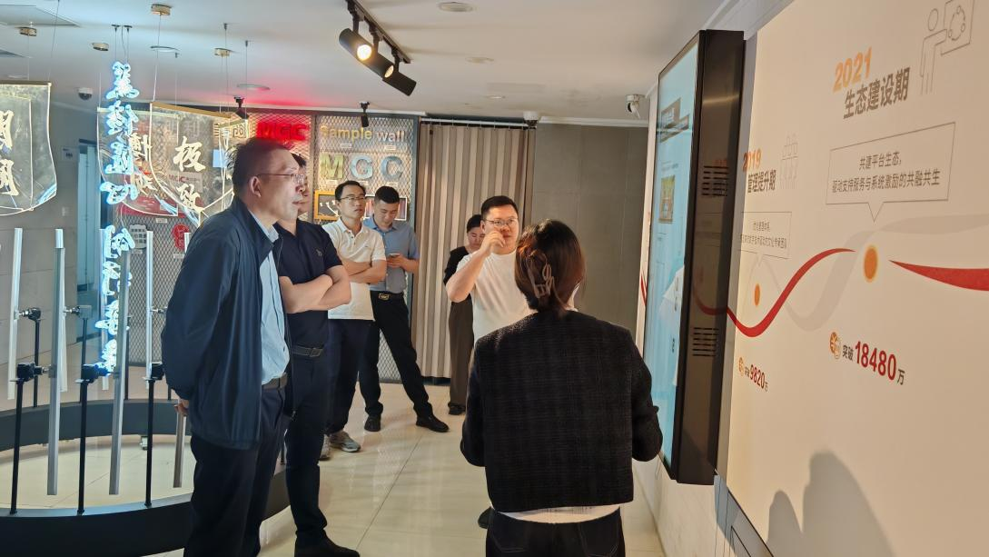 在公司负责人的陪同下,马振山一行参观了公司的数字化展示空间,了解了企业在文博活化、非遗数字化、文旅空间设计等领域的创新实践。