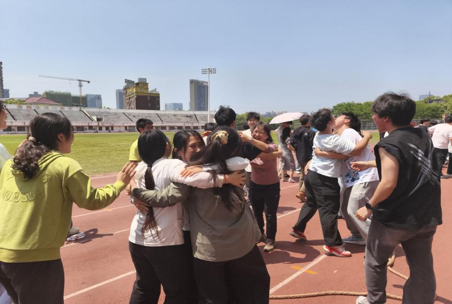 4 月 17-18 日,前沿交叉学科学院首届师生拔河比赛在东园田径场火热开赛。春日暖阳下,全体教职工队、研究生队及 2023 级、2024 级本科生及班主任组成的 20 支参赛队伍提前抵达现场。同学们或相互击掌鼓劲,或围成一圈大声喊着加油口号,脸上洋溢着跃跃欲试的兴奋;老师们也一改平日课堂上的严肃,笑着和学生们交流比赛 “诀窍”,现场气氛热烈非凡。