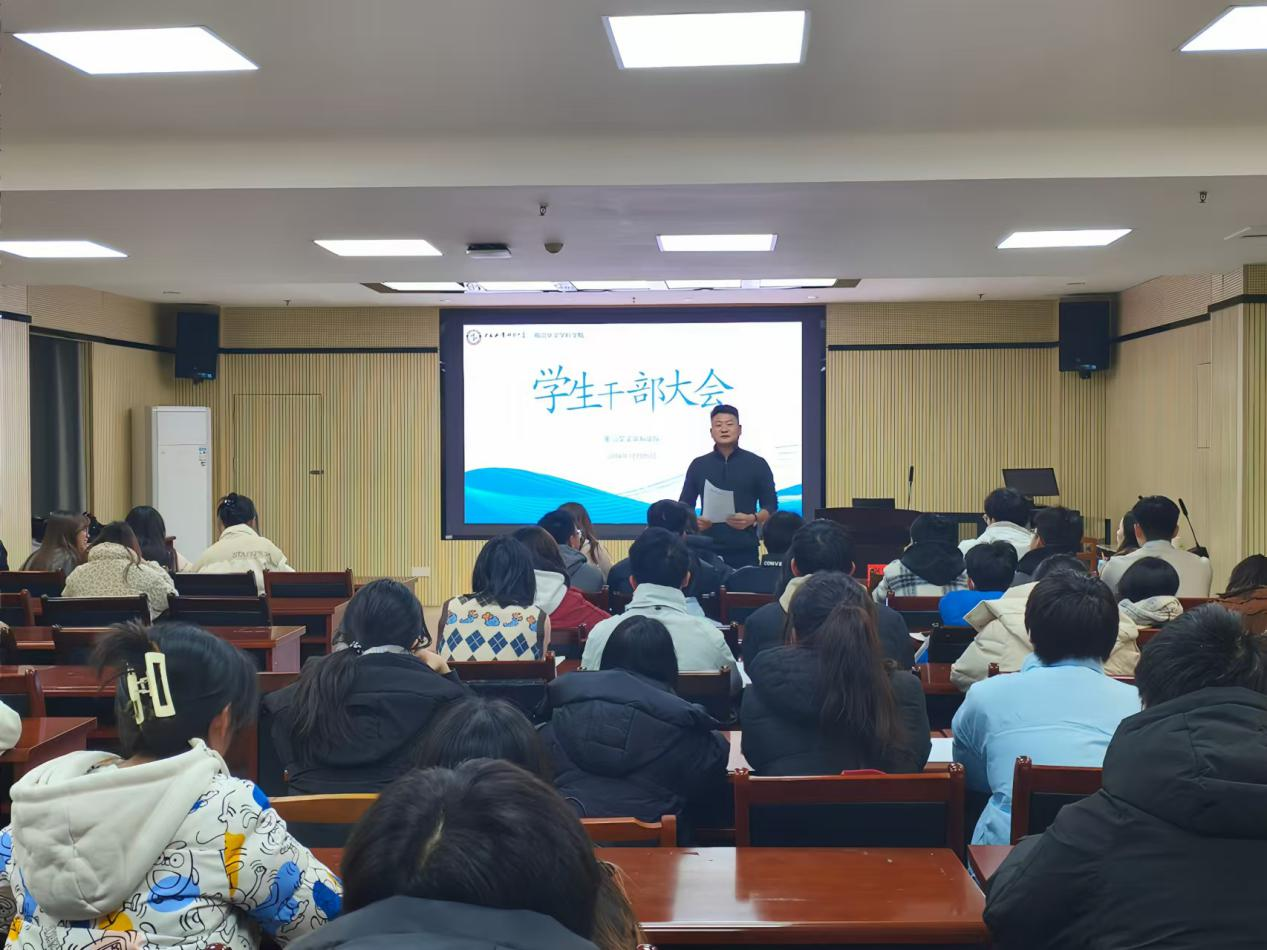吴敬东全面总结了2024年学生工作方面取得的成绩和存在的问题,并明确了2025年学生工作重点。他对学生干部提出了以下四点要求:一、端正态度,争做学生管理工作的有力助手;二、认真负责,争做学生服务工作的得力能手;三、以身作则,争做思想教育的强力舵手;四、开拓创新,争做学生素质提升的全力帮手。希望学生干部在学生工作中发挥积极作用,助力学院发展。(一审/王煜轩 二审/吴敬东 三审/马振山)